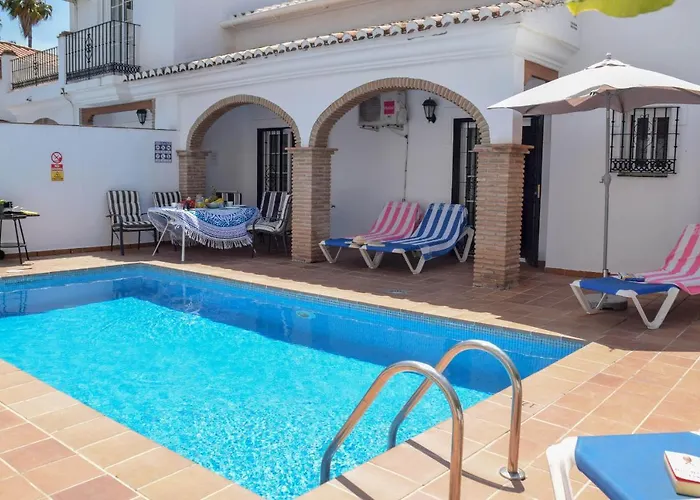 Nerja Paradise Rentals - Villa Las Dalias ligger i Burriana Beach område og byder på en terrasse. Boligen byder på 3 værelser, et køkken og 2 badeværelser. Denne indkvartering har også en privat pool til din rådighed.